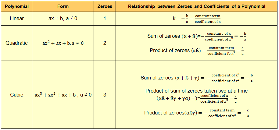 Relationship between Zeroes and Coefficients of a Polynomial