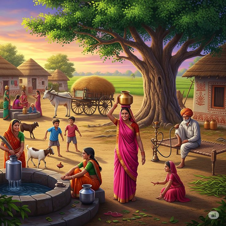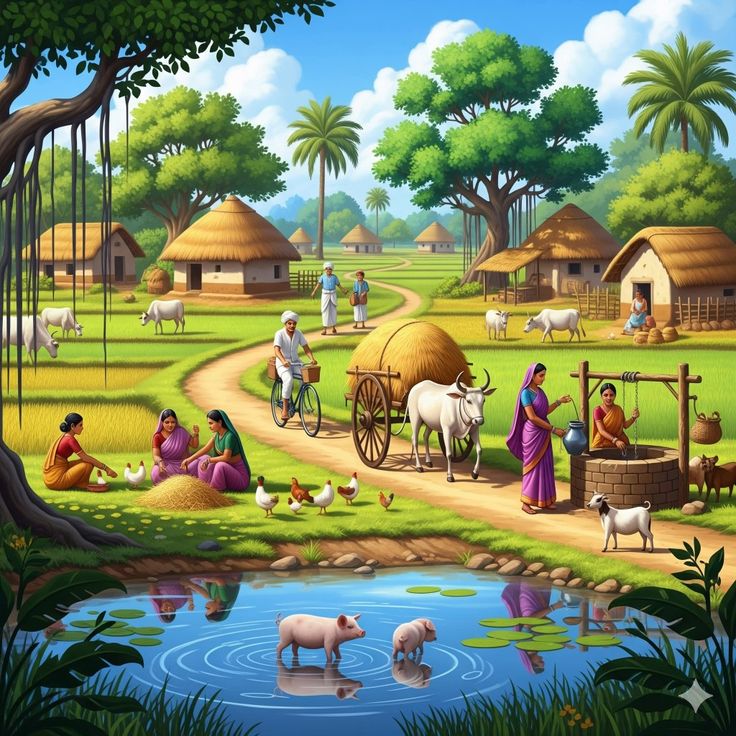 1. गाँव में लोग सुबह किस काम में व्यस्त थे? ________